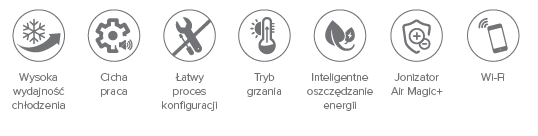 *Schładza pomieszczenie o powierzchni 15 m² w ciagu 15 minut z 29°C do 24°C. Testowane przy temperaturze zewnetrznej 30°C.